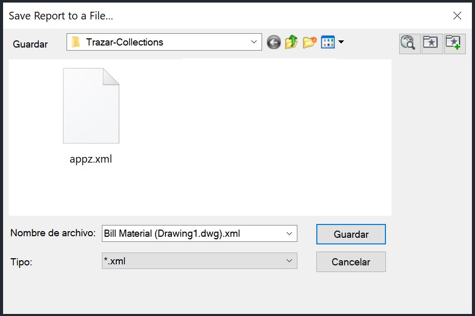 Seleccione Reporte del cuadro de diálogo y podrá realizar reportes automátizados y crear una lista de materiales de todos los objetos en el dibujo realizado por el programa trazar.