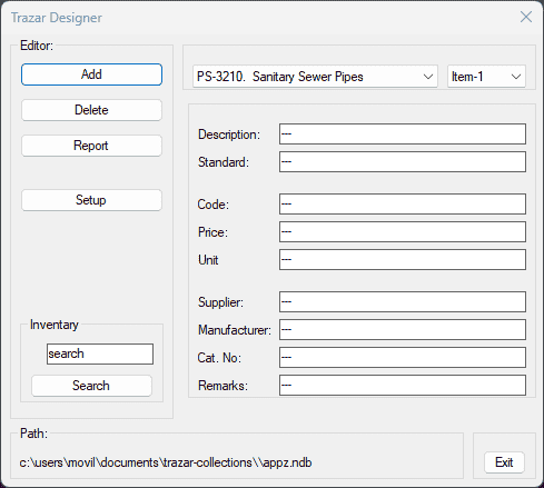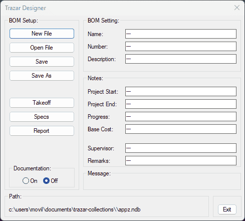 When you select Documentation from the dialog box you can get access building management. Also, you have choice reports and creates an automatic bill of materials of all accessory items used on the drawing by trazar program.